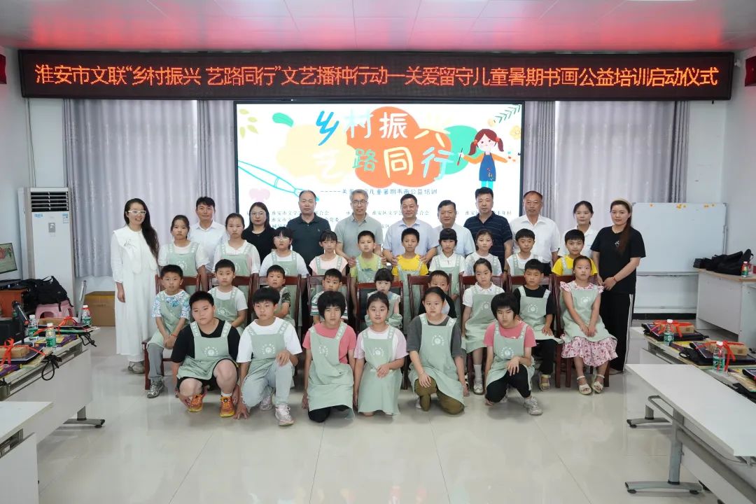 人才是乡村振兴的关键。文艺赋能乡村振兴,必须坚持“种文化”与“送文化”相结合,为基层培养一支带不走的“文艺轻骑兵”。公益讲座带来美学修行。淮安市文联依托新时代文明实践所,拓展洪泽院子、湖畔人才会客厅、蒋坝书房等实践阵地,对标群众需求,开展阅读、摄影、京剧、书画、声乐、美术等免费文化文艺培训,邀请省级、市级文艺大咖举办公益讲座,为基层文艺工作者和文艺爱好者答疑解惑、提升审美。带徒行动培养乡土文艺人才。淮安市文联在举办各类文艺、文旅培训时,都给蒋坝镇和相关村预留名额,支持市级文艺家协会到蒋坝举办艺术培训班,鼓励市、区文艺家协会与蒋坝镇文艺工作者结对,提高从业人员水平,挖掘本土人才,推动本地居民成为乡村文化振兴主角。艺术培训点燃艺术火种。淮安市文联重视乡村儿童艺术培训,去年起,在挂钩帮扶的淮安区车桥镇丰年村、大东村,开展“乡村振兴 艺路同行”文艺播种行动——关爱留守儿童书画公益培训,采取“线上+线下”模式,利用每年暑假进行线下培训,依托微信群进行线上指导,用文艺大爱点亮留守儿童心灵之灯,发挥“小手拉大手”作用,潜移默化地影响乡村文化建设。